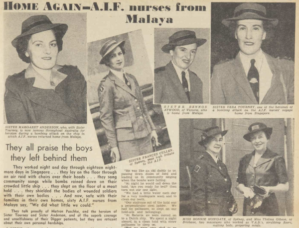 - The West Australian (Perth, 24 Feb 1942, p. 6), ‘Nurses Return.’