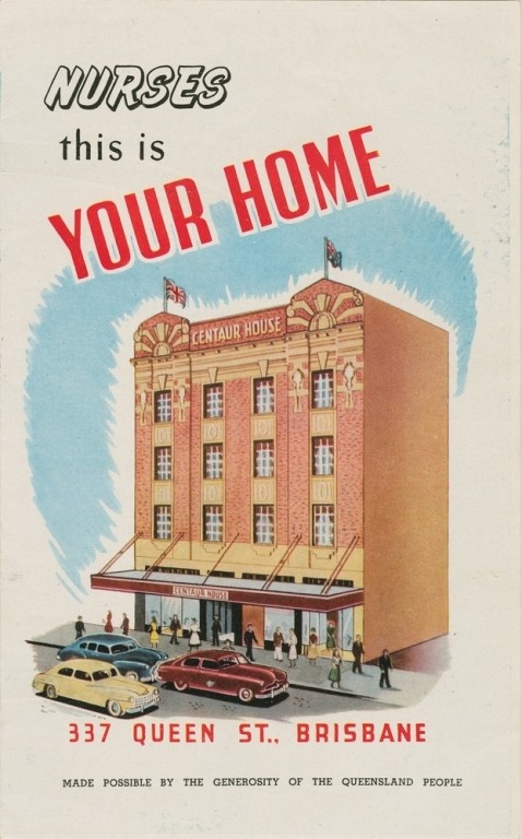 On the same date, Centaur House opened in Brisbane. A year earlier, in January 1948, the Welfare and Social Committee of the Australasian Trained Nurses’ Association (Queensland), with a similar vision to that of Ms Hughes-Jones and Colonel Sage in Melbourne, had launched an appeal to raise £65,000 to acquire a building to be used as a residential, recreational, educational and social centre for nurses. The building would be “a memorial to the brave women of the nursing service and particularly those who suffered the hardships of the two world wars” and would “take the form of a building to be a central meeting place for all associated with the nursing profession.”