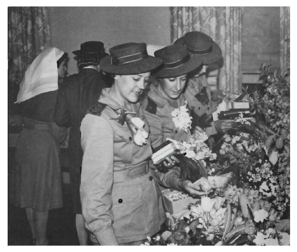 After a period of recuperation in Singapore, on 5 October Cecilia and her fellow ex-POWs boarded the AHS Manunda in Keppel Harbour and sailed home. The ship reached Fremantle on 18 October, and when it moved into its berth, the cheering crowds on the wharf were suddenly hushed. They stared, quiet with emotion, at the 24 women in grey army tunics and slacks standing on the boat-deck. As they put their feet on Australian soil for the first time in more than four years, the nurses turned and waved to the crowd, on the verge of tears but with huge smiles of thankfulness and joy. They were taken to the 110th Perth Military Hospital and given a gala reception. Following an appeal broadcast on the radio, the reception rooms of the hospital were banked with flowers. For each nurse was a special gift of a posy from the garden of Peggy Farmaner of the 2/4th CCS, one of the nurses shot on the beach. Her mother had brought the flowers to her daughter’s comrades.