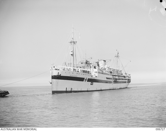 TSMV Manunda was a 9,915-ton coastal passenger ship built in Glasgow from 1927–29 for the Adelaide Steamship Co. In 1940 it was requisitioned by the Australian government, refitted as a hospital ship at Cockatoo Dock, Sydney, and on 22 July recommissioned as the 2/1st Australian Hospital Ship Manunda. The ship’s mission was to repatriate wounded Australian soldiers from the Middle East. After a trial run to Darwin, Port Moresby and back to Sydney, the Manunda was ready to sail to Suez in Egypt.