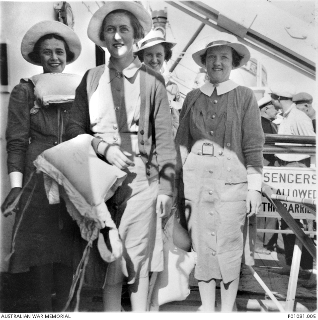 On 14 October 1940 the Manunda departed Sydney, thus commencing its first official voyage as a hospital ship. There were 13 AANS nurses on board, including Margaret, – Staff Nurse Vera Wilkinson – and two physiotherapists (usually known then as ‘masseuses’), all of whom were under the charge of Matron Clara Jane Shumack. The ship called in at Fremantle on 21 October and then continued to Colombo and Aden before arriving at Port Tewfik, the port of Suez, around mid-November.