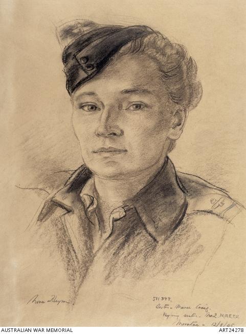 Miss Nora Heysen … was to spend a fortnight with us at Morotai painting us at work. Writing of these days brings to mind Nora’s painting of Marie and how it came about. Nora had approached me many times to sit for her and for one reason or another I did not want to. One day there was only Marie, Nora and myself in the Officer’s Mess when once again Nora asked me to allow her to paint me. Again I wasn’t keen and dithered whereupon Marie said to Nora, ‘Look Nora, you might as well paint me, I’ll pose for you. This job is going to kill me anyway and at least people will know what Marie Craig looked like.’ I was aghast at this statement, because she seemed to mean it. I remember saying to her, ‘Marie, it is a volunteer job and no one would mind if you transferred to ground duties’ … but she was adamant, she was going to fly on and she was just as sure she was not going to make it home to Australia. ‘No Chan, the writing is on the wall. I am just not going to come through’ (quoted in Willoughby, p. 222).