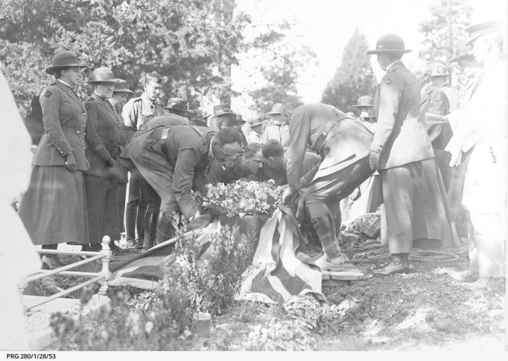 Mary was given a full military funeral, the first time in South Australian history that a nurse had been thus honoured. At 2.30 pm on 21 March the funeral cortege left the hospital and proceeded the short distance to Mitcham Cemetery. The gun carriage was preceded by the firing party and the 4th Military District Band. The mourners included patients from No. 15 AGH and No. 7 AGH at Keswick. Practically every available AANS nurse in the district was in attendance, as well as wardsmaids from the various hospitals. At the conclusion of the service the firing party fired volleys and the bugler played ‘The Last Post.’ Finally the band played ‘Go Bury Thy Sorrow.’ It was a sad and impressive ceremony.