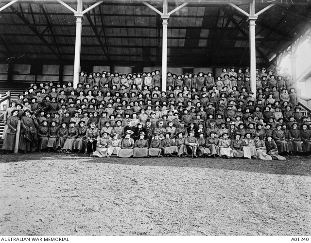 Nurses from the Mooltan en route to service in Salonika, Adelaide, 14 Jun 1917. Courtesy Australian War Memorial A01240.