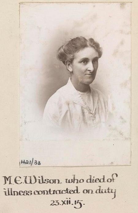 Myrtle died on 23 December 1915. On 1 January her colleague Priscilla Wardle wrote that “poor old Wilson died on the Thursday night before Christmas at 7.30 p.m. She was conscious to the last and spoke of us all and told Edith [Donaldson] to say goodbye to us. She and Edith took communion two days before she died.”