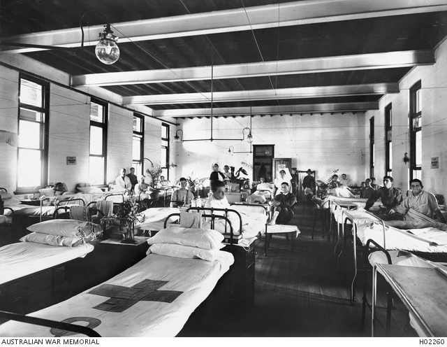 Tuesday 10th [December]. Got into the port at Freemantle at daylight. Got up early & when the pilot came off he told us that we could not have shore leave. At about 9.30 AM the shore authorities signalled for 20 sisters to nurse Spanish flue. Matron called for volunteered 26 of us spoke up & then we drew lot’s for places. Brady & I were amongst the 20. We left the old Wyreema at 4 pm on Tuesday & are all feeling very lonely. Sat on the jetty here at Woodmans point while the people at the station finished a row they were having. Arrived up here hungry & tired. Unpacked & had a look around. Brady & I went down onto the jetty & gazed longingly out at the old boat wishing to heaven we were back there again.