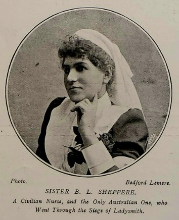 From Durban Rose entrained for Ladysmith, 230 kilometres to the northwest, and arrived towards the end of October. She began to look for a nursing appointment. “Well, I got into Ladysmith,” she recalled when interviewed in London by a reporter for Jewish World in June 1900 (whose subsequent story was printed on 8 June 1900 and reproduced in the Melbourne Jewish Herald on 20 July 1900), “and got tanned in the broiling sun whilst endeavouring to get appointed on the nursing staff. I went straight to the head people, and by persistence won my point. I saw many other nurses refused.”