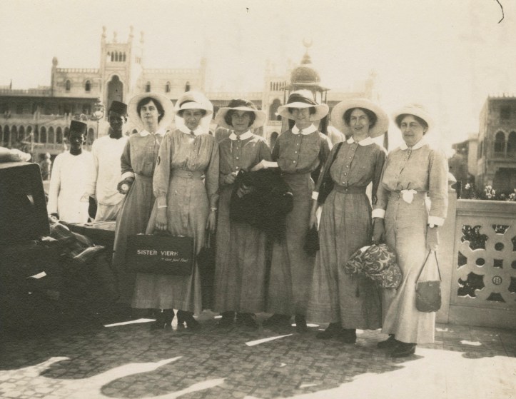 The nurses remained on board the Kyarra while their units awaited disembarkation orders. However, they were given shore leave each day and spent the time pleasantly enough exploring the city. Some even travelled as far afield as Cairo.