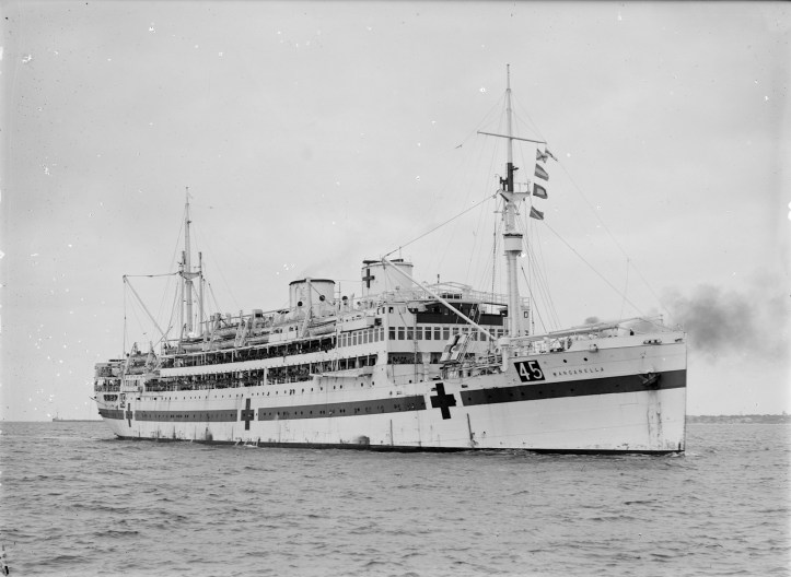 On Monday 8 September 1941 Vima, Sister Eloise Bales, and Staff Nurses Sara Baldwin-Wiseman, Alma Beard, Iole Harper, Minnie Hodgson and Gertrude McManus travelled to Fremantle and boarded the 2/2nd Australian Hospital Ship Wanganella, which had arrived that day.
