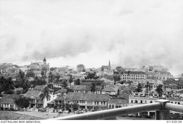 The forces of the Japanese 25th Army were now in complete control of the peninsula, and although the blowing of the Causeway held them at bay temporarily and provided something of a respite for the staff of the 2/13th AGH, St. Patrick’s was anything but peaceful. As Elizabeth Simons noted in While History Passed, “Night and day the [Japanese] planes roared over to attack the harbour, ack ack guns stuttered half the time, sirens wailed and the traditional peace and quietness of a hospital were completely unknown” (Simons, p. 5). Then on 3 February Japanese artillerymen began a ferocious bombardment of Singapore’s oil infrastructure. The resulting fires generated palls of thick black smoke, which hung over the city, creating an eerie twilight. Meanwhile, wealthy residents, mainly European and Eurasian women, children and men, had now fully realised the gravity of the situation and were seeking passage on any vessel that would take them away from Singapore.