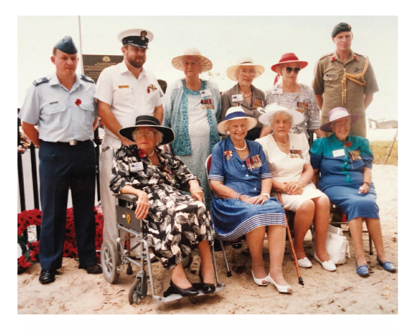 In 1992 Vivian travelled to Bangka Island for the first time since the war. She had gone to choose an appropriate site in the vicinity of Radji Beach for a memorial to her fallen colleagues. On 2 March 1993, in the company of her POW comrades Jean Ashton, Flo Syer (née Trotter), Pat Darling (née Gunther), Mavis Allgrove (née Hannah), Wilma Young and Joyce Tweddell, Vivian returned to Bangka Island for the dedication of the memorial. It was the culmination of a long-standing ambition of Vivian’s to make a fitting tribute to those who did not return. Vivian and her old friends felt that with the formal dedication of the memorial, an unfinished chapter had been properly concluded. “It has always worried me,” said Vivian, quoted in Vetaffairs in March 1993, “that the girls were just … out there. Now they have come home, they belong somewhere.” The seven women then travelled to Jakarta to pay tribute to their eight comrades who died in the Muntok and Belalau internment camps and in December 1961 were reinterred in the Jakarta War Cemetery.