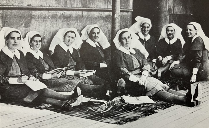 Meanwhile, Winnie and her new 2/10th AGH colleagues had established an emergency hospital to manage sickness and accidents during the voyage. The ship’s smoking room was converted into a ward, and an operating theatre was set up on a lower deck. During their free time, the nurses had access to a range of facilities, including a cinema and a swimming pool. They were invited to concerts and could attend nightly cabarets, but only if accompanied by an officer.